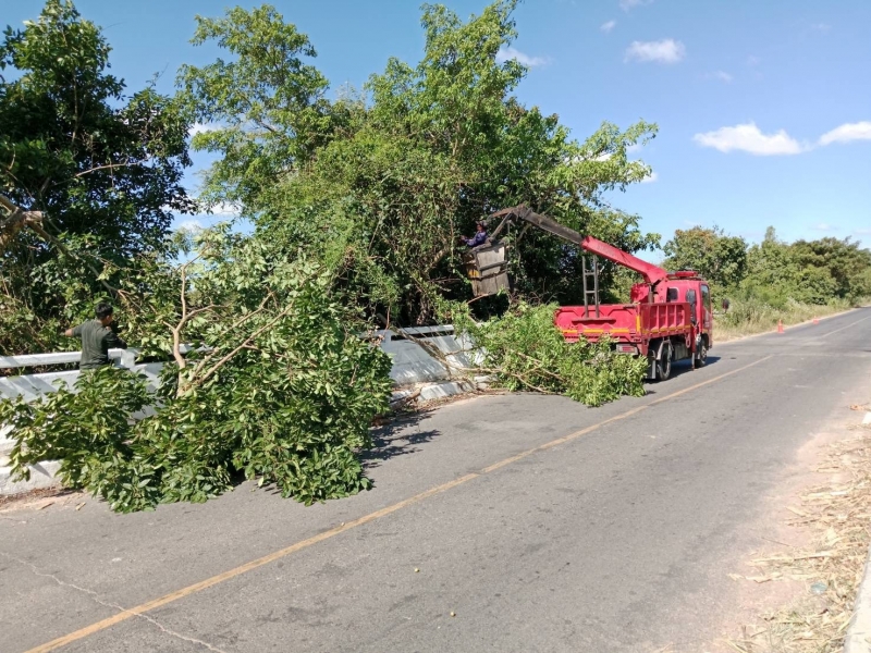 เทศบาลตำบลดงเย็น ออกตัดกิ่งไม้ที่ยื่นออกมาบริเวณสะพานบ้านนาจาน-โคกขามเลียน...