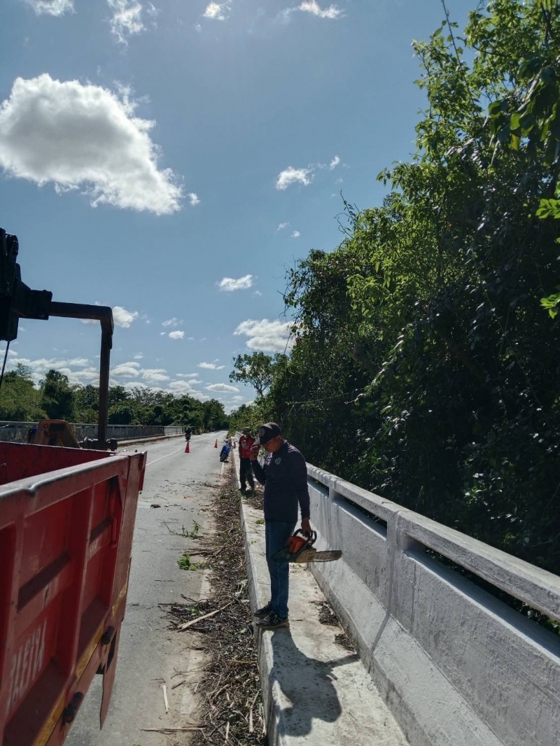 นายสรสินธุ์ ดีดวงพันธ์ นายกเทศมนตรีตำบลดงเย็น สั่งการให้เจ้าหน้าที่งานป้องกันและบรรเทาสาธารณะภัย สำนักปลัด เทศบาลตำบลดงเย็น ออกตัดกิ่งไม้ที่ยื่นออกมาบริเวณสะพานบ้านนาจาน-โคกขามเลียน ทำให้รถที่สัญจรผ่านไปมาไม่สะดวก ทั้งนี้เพื่อความปลอดภัยของประชาชนผู้ใช้รถใช้ถนน