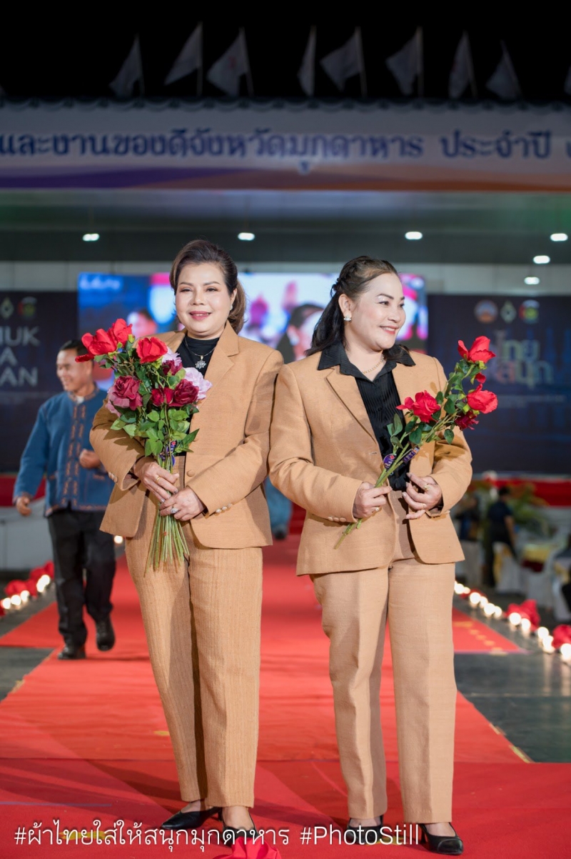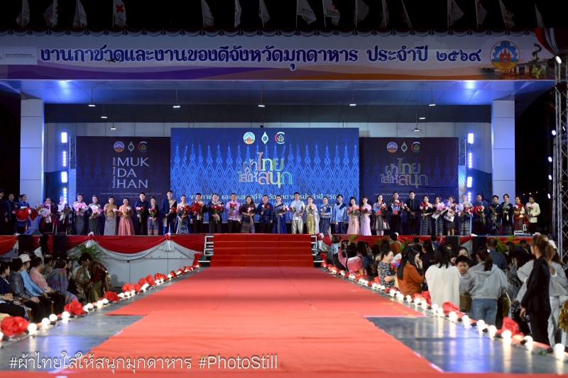 ณ เวทีกลาง งานกาชาดและงานของดีจังหวัดมุกดาหาร ประจำปี ๒๕๖๙ นายสรสินธุ์ ดีดวงพันธ์ นายกเทศมนตรีตำบลดงเย็น พร้อมภริยาและรองนายกเทศมนตรี ร่วมกิจกรรมเดินแบบผ้าไหมและผ้าพื้นเมืองในงานกาชาดและงานของดีจังหวัดมุกดาหาร ประจำปี ๒๕๖๙ โดยมีนายวรญาณ บุญณราช ผู้ว่าราชการจังหวัดมุกดาหารเป็นประธานในพิธี พร้อมด้วยคณะรองผู้ว่าราชการจังหวัดมุกดาหาร ประธานแม่บ้านมหาดไทยจังหวัดมุกดาหาร และหน่วยงานทุกภาคส่วนที่เกี่ยวข้องเข้าร่วมในกิจกรรมเดินแบบผ้าไหมและผ้าพื้นเมือง โดยมีนายแบบ นางแบบ จากหน่วยงานราชการ องค์กรปกครองส่วนท้องถิ่น ภาคเอกชน ประชาชน นักเรียนนักศึกษา จากทั้ง ๗ อำเภอ จำนวนกว่า ๑๔๐ คู่ ร่วมเดินแบบเพื่อโชว์ความงดงามของผ้าพื้นเมืองมุกดาหาร