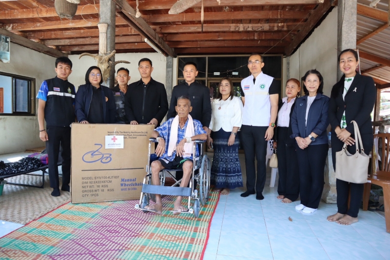 อำเภอเมืองมุกดาหาร ร่วมกับเหล่ากาชาดจังหวัดมุกดาหาร ชมรมแม่บ้านมหาดไทยจังหวัดมุกดาหาร และเทศบาลตำบลดงเย็น ลงพื้นที่ร่วมมอบรถเข็น (วีลแชร์) ให้กับผู้ป่วย จำนวน ๓ ราย ในเขตเทศบาลตำบลดงเย็น เพื่อเป็นกำลังใจ และเพื่อความสะดวกในการดำเนินชีวิตประจำวัน ส่งเสริมให้มีคุณภาพชีวิตที่ดีขึ้น โดยนายนที พรมภักดี นายอำเภอเมืองมุกดาหาร พร้อมด้วยนายสรสินธุ์ ดีดวงพันธ์ นายกเทศมนตรีตำบลดงเย็น คณะผู้บริหาร สมาชิกสภาเทศบาล งานพัฒนาชุมชน สำนักปลัด เทศบาลตำบลดงเย็น ร่วมมอบและเป็นกำลังใจให้แก่ผู้ป่วยในครั้งนี้
