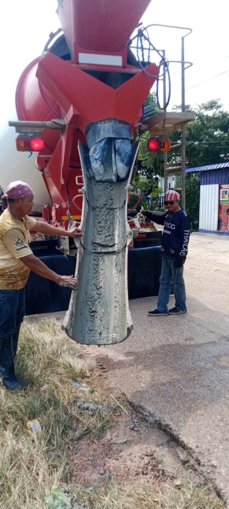 กองช่างลงพื้นที่ดำเนินการซ่อมแซมถนนคอนกรีตในหมู่บ้าน...