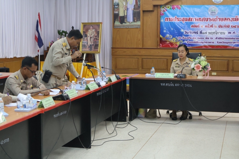 นางฐนิดา ดีดวงพันธ์ ประธานสภาเทศบาลตำบลดงเย็น เป็นประธานเปิดการประชุมสภาเทศบาลตำบลดงเย็น สมัยสามัญ สมัยที่ ๔ ครั้งที่ ๒ ประจำปี พ.ศ.๒๕๖๘ ณ ห้องประชุม ๒๐๑ ชั้น ๒ สำนักงานเทศบาลตำบลดงเย็น อำเภอเมืองมุกดาหาร จังหวัดมุกดาหาร