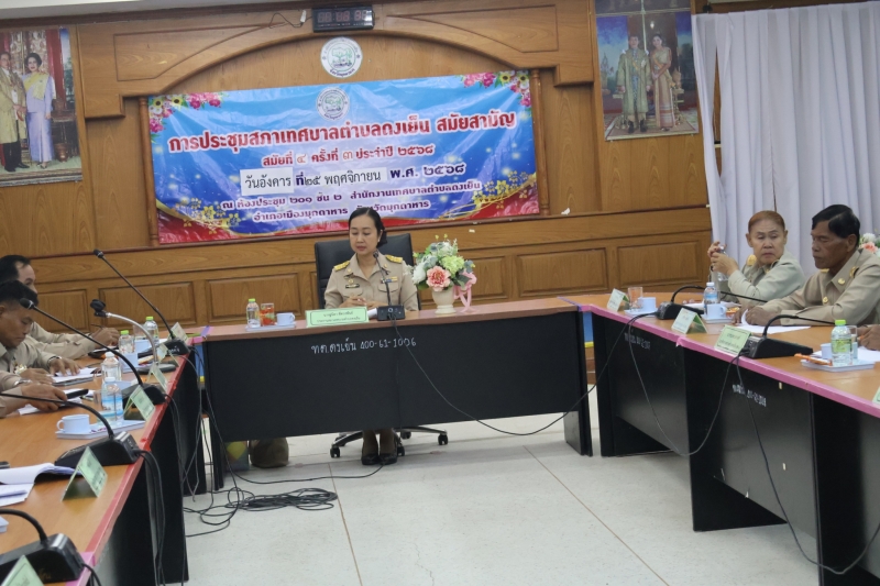 นางฐนิดา ดีดวงพันธ์ ประธานสภาเทศบาลตำบลดงเย็น เป็นประธานเปิดการประชุมสภาเทศบาลตำบลดงเย็น สมัยสามัญ สมัยที่ ๔ ครั้งที่ ๓ ประจำปี พ.ศ.๒๕๖๘ ณ ห้องประชุม ๒๐๑ ชั้น ๒ สำนักงานเทศบาลตำบลดงเย็น อำเภอเมืองมุกดาหาร จังหวัดมุกดาหาร